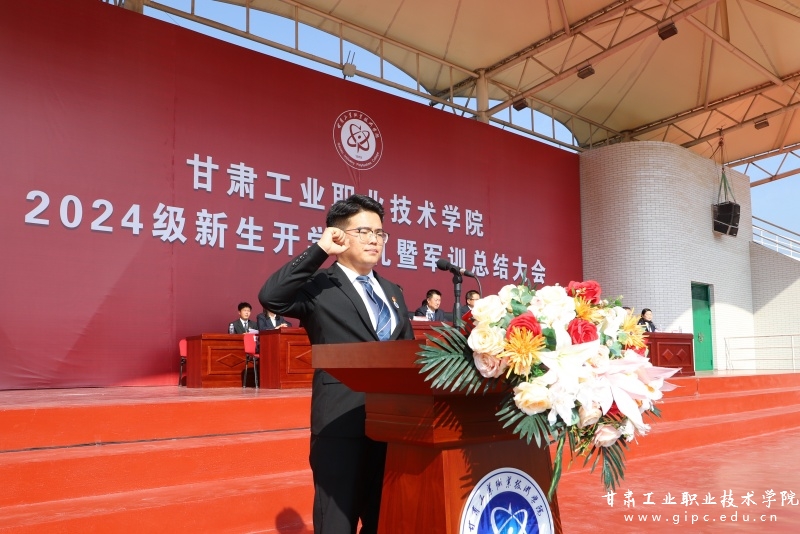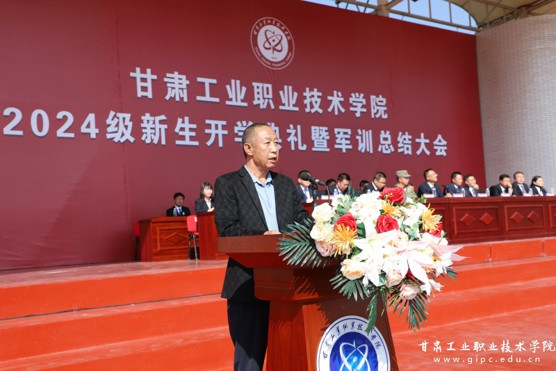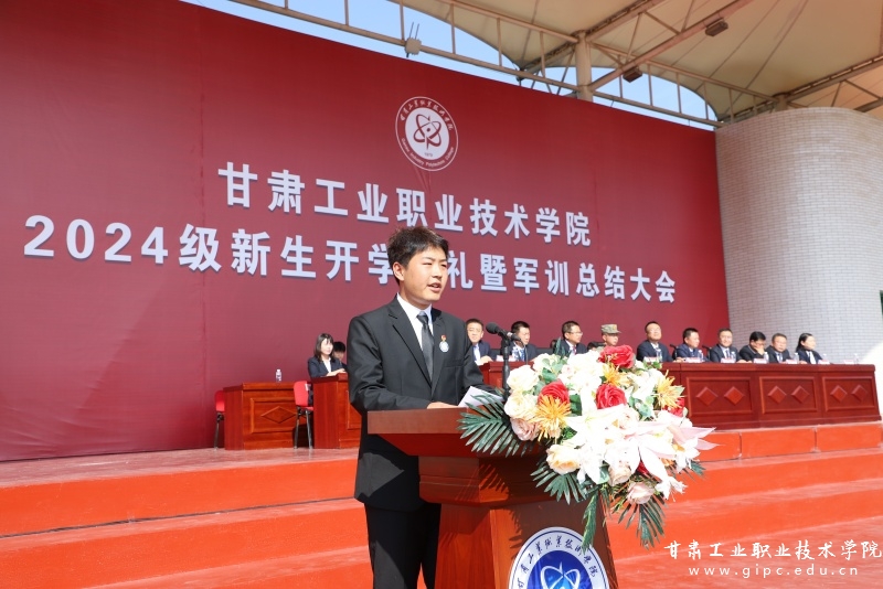 张利军致辞,对全体新同学表示热烈欢迎,向承训教官表示衷心感谢。张利军表示,新同学们要以“工院学子”之名,传承“工院人”使命,弘扬“工院人”精神,创造“甘工院”新荣耀。希望同学们以军训为契机,刻苦学习,练就过硬本领,不负家长期望,不负学校所盼,不负时代所托,成长为祖国的栋梁之才,为实现中华民族伟大复兴的中国梦而努力奋斗。