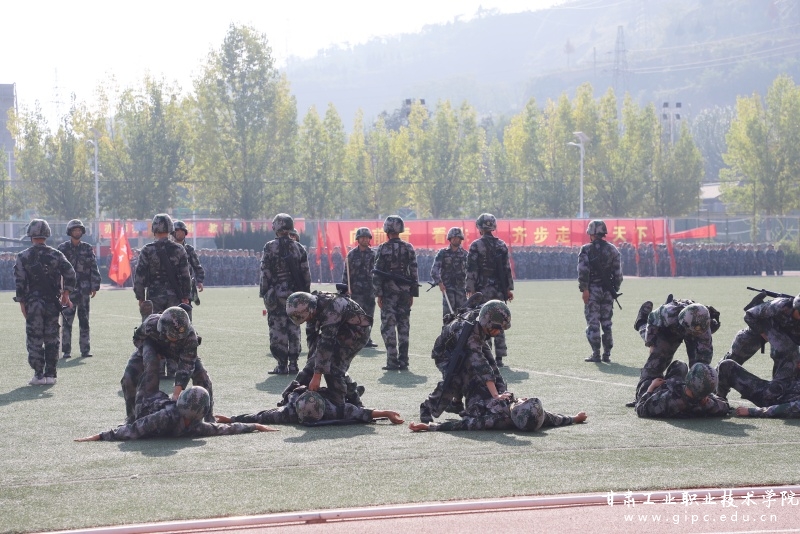 大会在雄壮的国歌中拉开帷幕,各分列式方队迈着整齐的步伐依次走过主席台,接受检阅,同学们步伐铿锵、口号嘹亮、动作娴熟、气势如虹。分列式表演结束后,军训项目展示方队进行了精彩的队形变换、拳术、匕首操、战伤救护和枪术等项目展示。