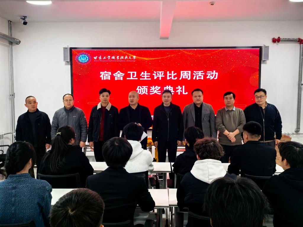 为深入推进校园文明建设,培养学生良好的劳动习惯与集体主义精神,营造整洁、舒适的学习环境,近日,学工处组织开展了“我的宿舍我的家,洁净温馨靠大家”为主题的宿舍卫生评比活动,并于11月7日在“一站式”学生社区对优秀宿舍颁发了流动红旗及奖品,学工处相关负责人、各二级学院副书记及优秀宿舍学生代表参加。