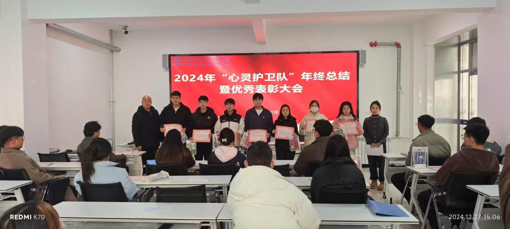 为进一步加强学校心理委员队伍建设,提高我校学生心理健康水平,12月27日我校心理健康办公室组织“心灵护卫队”学生在“一站式”学生社区开展了2024年年终总结暨“心灵护卫队”优秀表彰大会,我校“心灵护卫队”全体成员参会,大会由学工处处长马学成主持。