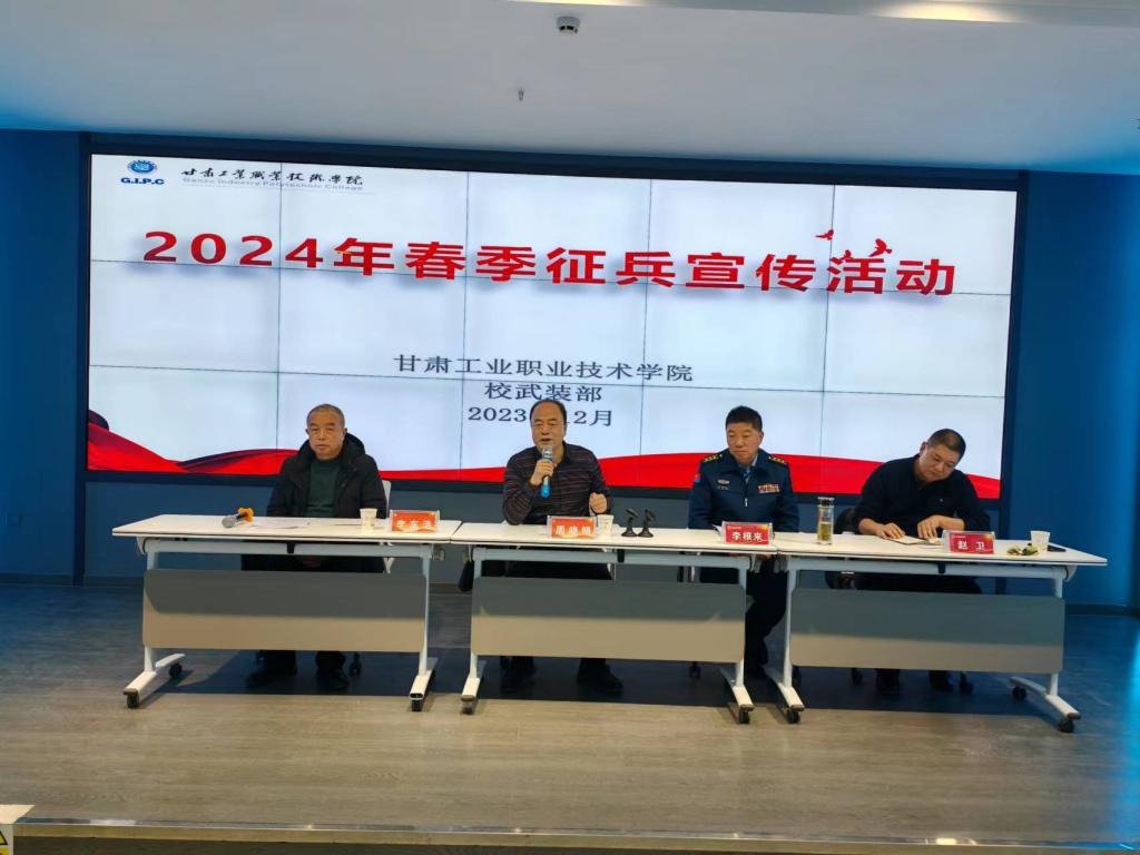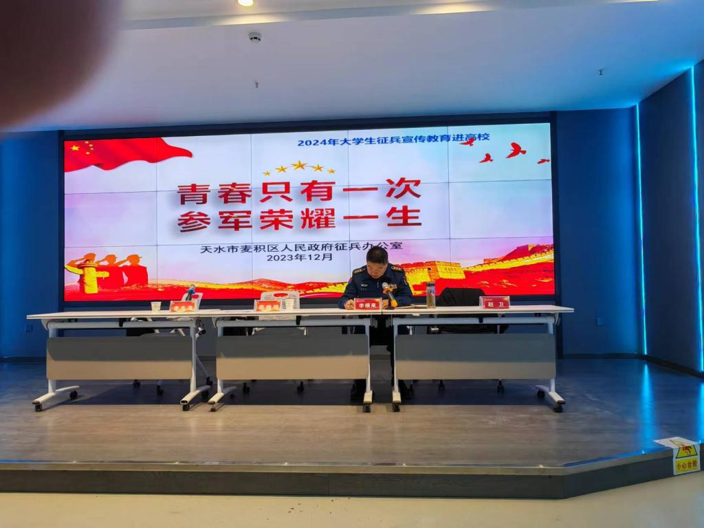 为帮助学校全体学工口教师掌握了解大学生征兵入伍的最新政策要义,做好2024年大学生参军入伍宣传动员工作,圆满完成学校2024年征兵工作任务,12月27日下午,校武装部、学校征兵工作站邀请麦积区武装部李根来部长一行3人,在旅游院实训室对学校学工口教师举办大学生征兵入伍政策培训活动。培训会由学校武装部部长李东浩主持,各二级学院主管学生工作副书记、专职辅导员、兼职班主任共计70人参加培训会,副校长周晓明出席培训会。