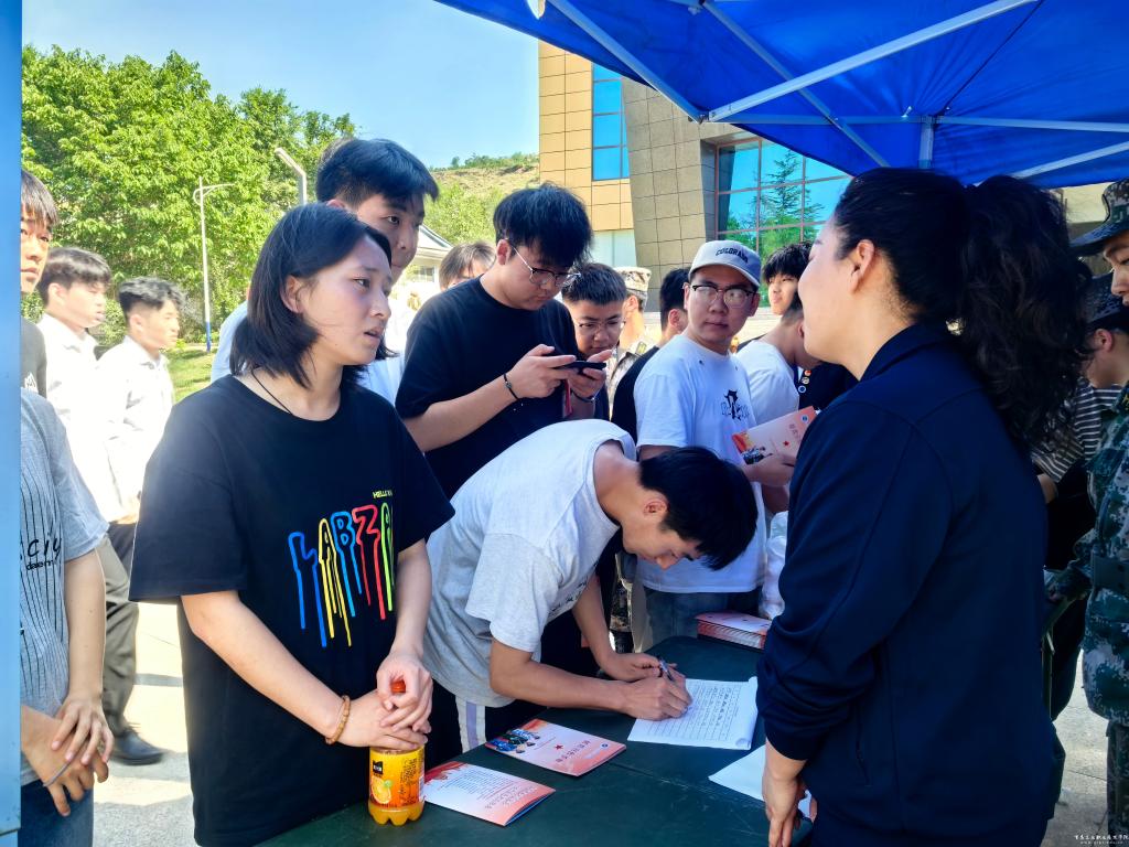 宣讲会结束后,征兵工作人员在彩陶园广场设立咨询台,为同学们提供“一对一”政策解答,并发放征兵宣传手册和军旅主题文创纪念品,现场气氛热烈。