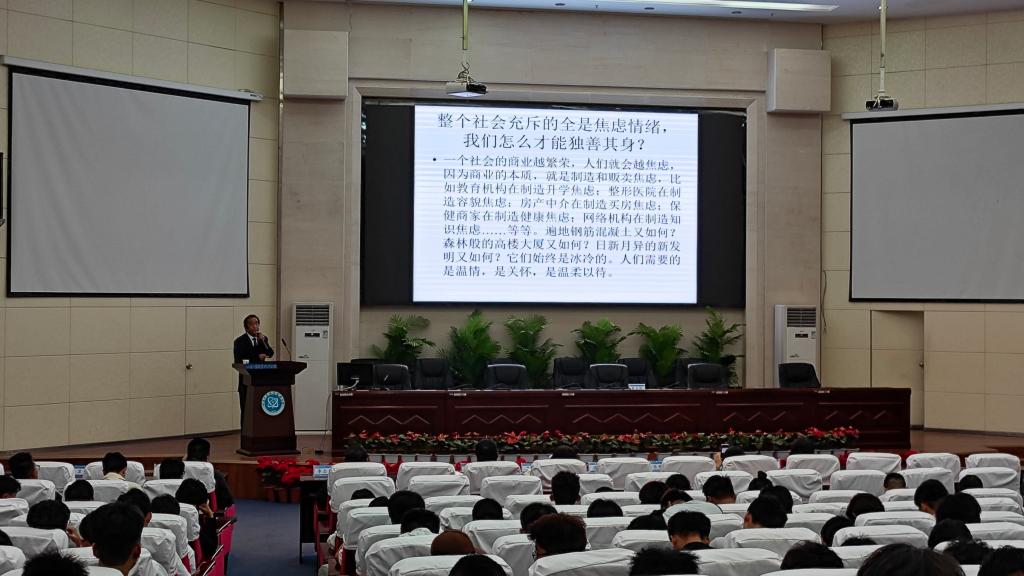 启动仪式结束后,首场学生团体心理辅导报告会主讲嘉宾,甘肃省心理咨询师学会秘书长莫兴邦应邀做了题为《弘扬传统文化 用“心”经营自己》的报告,报告从高职院校学生心里突出问题及表现;提升心理资本,预防心理危机;高职学生常见心理问题等五个方面为全体学生系统阐释了用“心”经营自己,拥有美好生活的重要性和方法。整个讲座贴近实际,既有典型案列,又有理论阐述,具有很强的针对性和指导性。本届心理健康主题月活动以“和谐心灵 悦纳自我 健康成长为主题”,历时一个月,期间将从学校和二级学院两个层面组织开展不同类型活动,通过开展各种活动进一步强化全体同学的心理健康意识,掌握心理调控能力和社会适应能力,使自己成长为身心和谐发展,具有健全人格的德智体美劳全面发展的大学生。